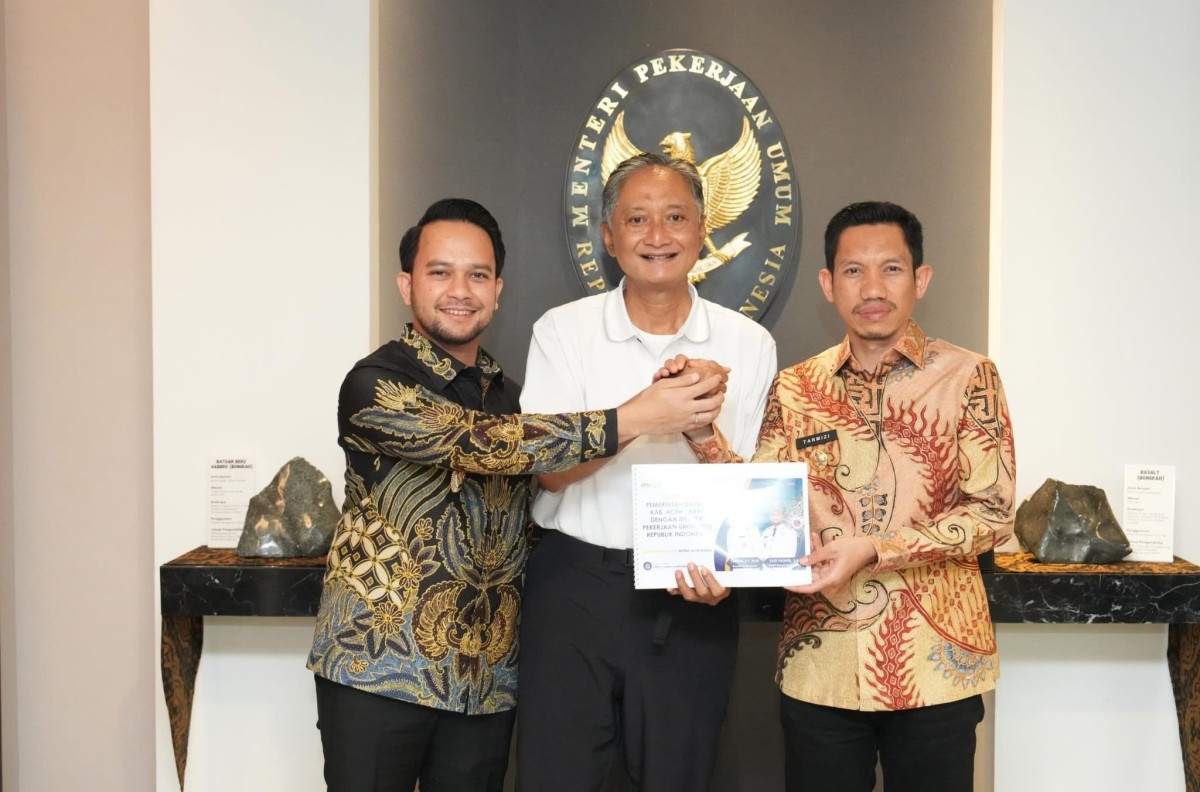 Aceh Barat | Sudutpenanews.com : Bupati Aceh Barat, Tarmizi, SP, MM Bersama Wakil Bupati Said Fadheil dan Kadis PUPR Aceh Barat, Dr.Kurdi ST,MT Sabtu (4/10/2025) bertemu dengan Menteri Pekerjaan Umum (PU) Dody Hanggodo.