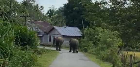 Sudutpenanews.com, Meulaboh : Pagi itu, Selasa, 4 Maret 2025, sekitar pukul 10.00 WIB, suasana Desa Blang Luah, Kecamatan Woyla Timur, Kabupaten Aceh Barat, mendadak gempar. Dua ekor gajah raksasa tiba-tiba muncul di pemukiman penduduk, mengejutkan warga yang tengah beraktivitas rutin.