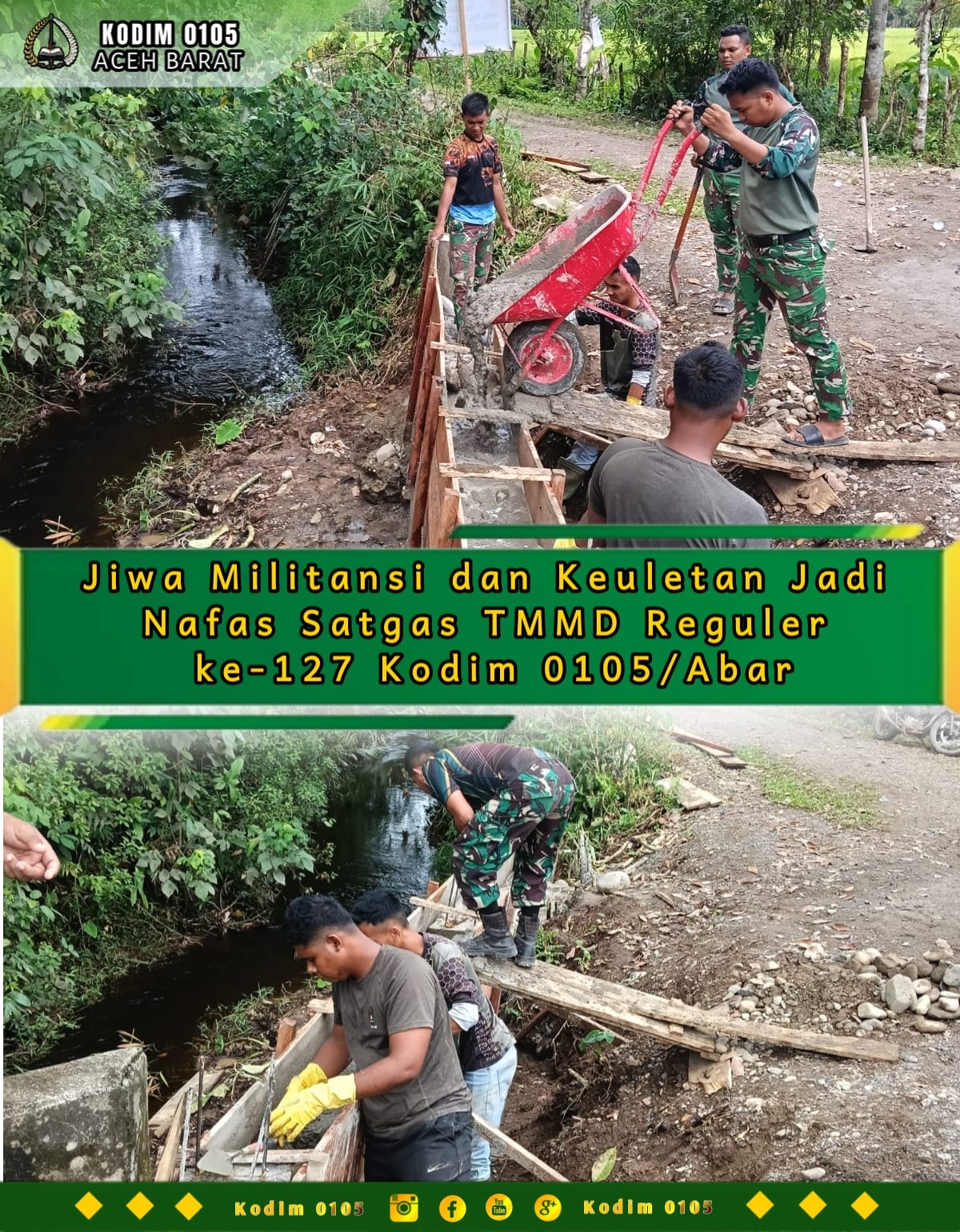 Sudutpenanews.com | Aceh Barat – Militansi dan keuletan benar-benar menjadi nafas pengabdian Tim Satgas TMMD Reguler ke-127 Kodim 0105/Abar dalam menuntaskan sasaran fisik pembangunan infrastruktur di Desa Pasi Aceh, Kecamatan Woyla, Jum’at (27/2/2026).