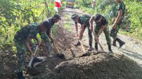 Sejiwa dan Sehati, Tim Satgas TMMD Kodim 0105/Abar Bersama Masyarakat Timbun Jalan Urat Nadi Desa