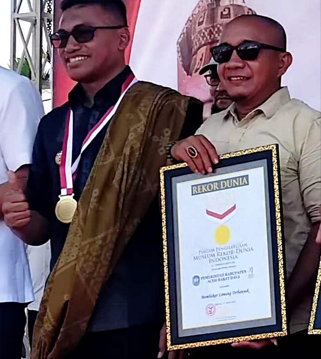 Bupati Aceh Barat Daya, Dr. Safaruddin, Bersama Ketua DPRK Aceh Barat Daya Roni Guswandi, Saat Menerima Dua Rekor MURI : Foto (ist)