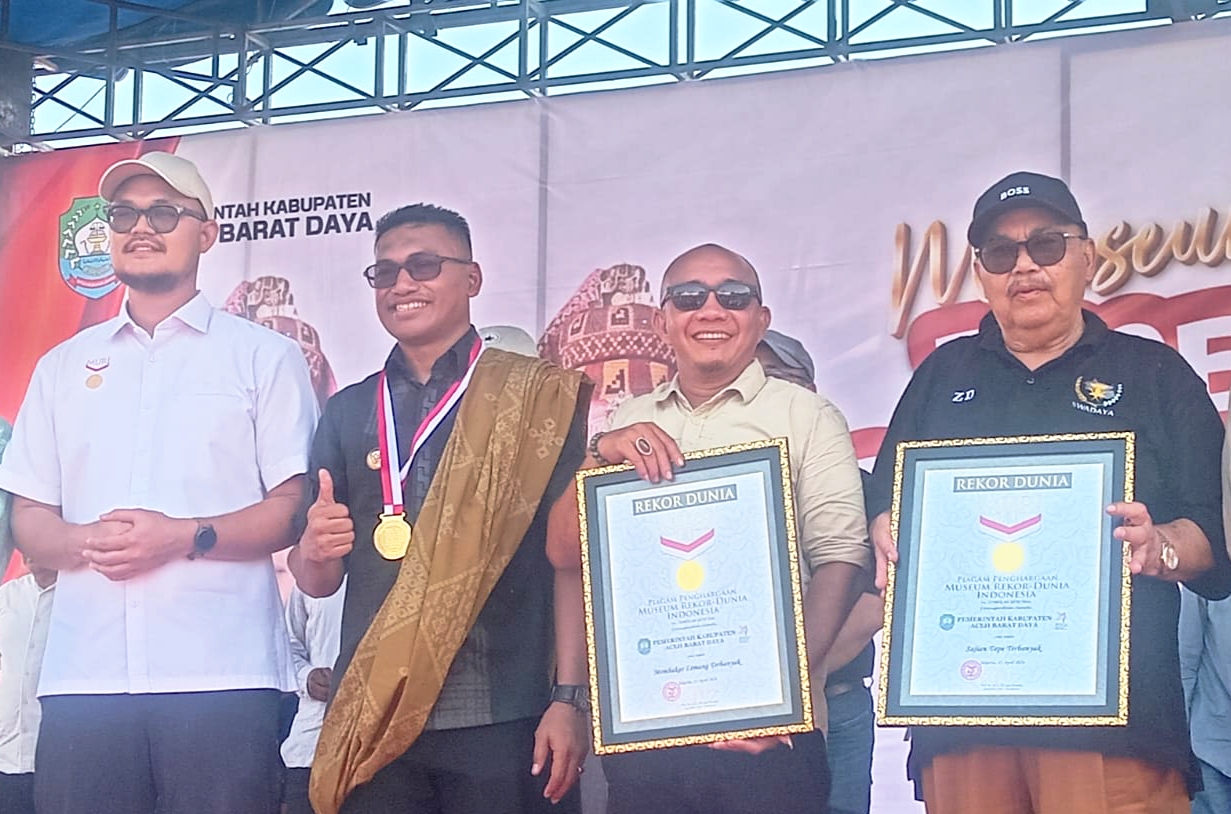Piagam rekor MURI ini diterima langsung oleh Bupati Safaruddin, yang turut didampingi Ketua DPRK Aceh Barat Daya Roni Guswandi, unsur Forkopimda, serta sejumlah pejabat terkait lainnya.