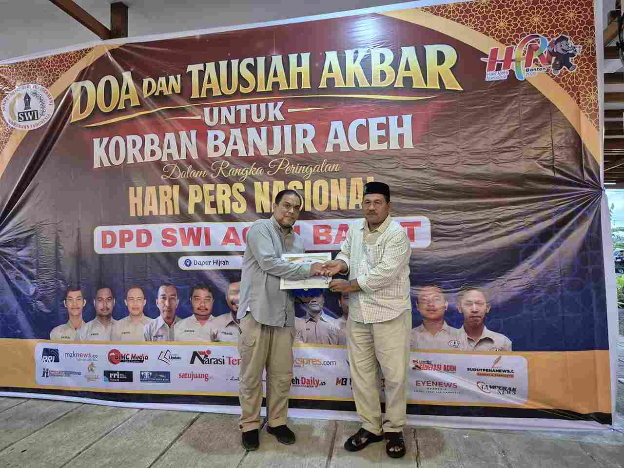 Kegiatan HPN 2026 yang digelar Sekber Wartawan Indonesia DPD Aceh Barat tersebut turut dihadiri unsur pemerintah daerah, insan pers, serta sejumlah tokoh masyarakat. Acara berlangsung khidmat dan penuh keakraban.